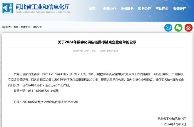 据河北省工业和信息化厅消息,近日,河北省工业和信息化厅公示了2024年数字化供应链贯标试点企业名单,全省共认定15家企业上榜,其中有中国服装协会理事