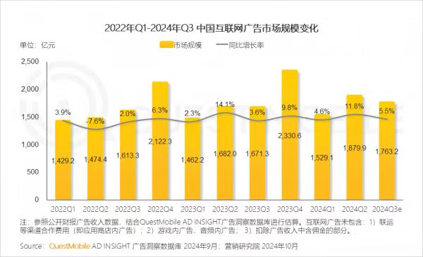 11月5日,国内知名的商业智能数据服务商QuestMobile发布了中国移动互联网2024年秋季报告。数据显示,截止到2024年9月份,移动互联网月