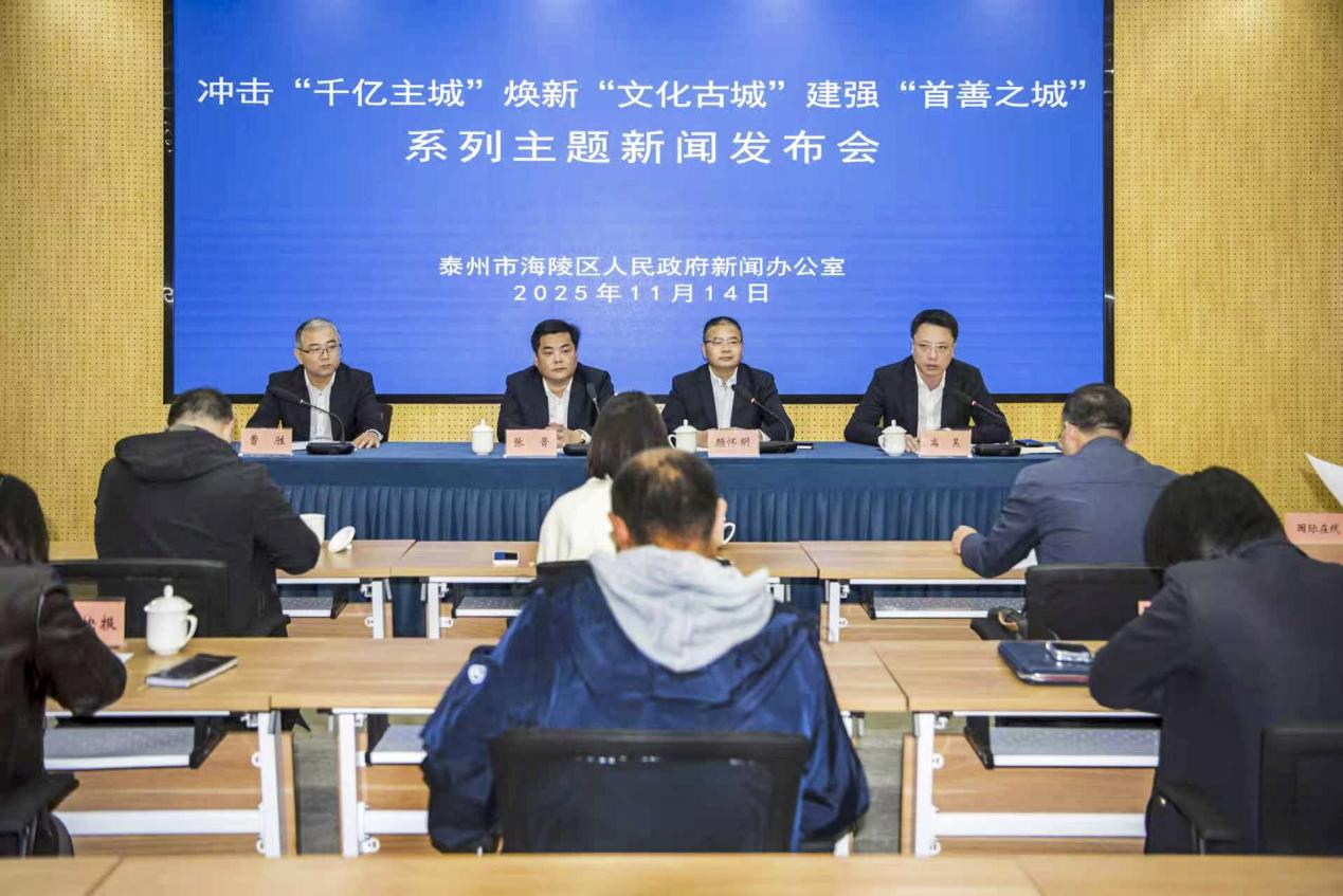 11月14日,江苏省泰州市海陵区召开“冲击‘千亿主城’ 焕新‘文化古城’ 建强‘首善之城’”系列主题新闻发布会第二场,聚焦服务业“登高提质”专场。该